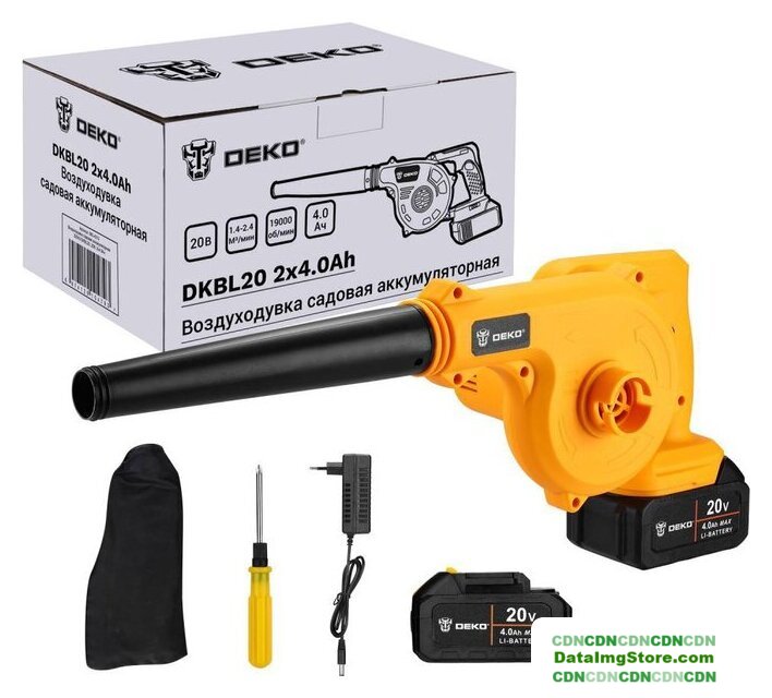 | Комплектация | - Воздуходувка- Аккумулятор 4,0 Ач - 2 шт.- Мусоросборник- Отвертка- Зарядное устройство для аккумулятора- Инструкция- Коробка |