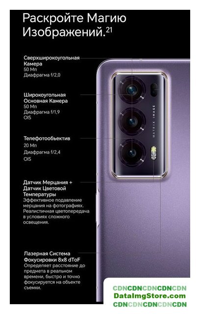 | Характеристики блока камер | 50 Мп, f/1.9, 8x8 dToF Laser AF, оптическая стабилизация, широкоугольный20 Мп, f/2.4, 62мм, 2.5x оптический зум, оптическая стабилизация, телеобъектив50 Мп, f/2.0, 13мм, сверхширокоугольный |