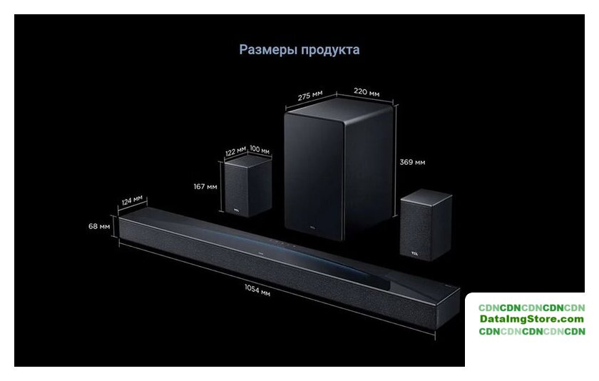 | Комплект поставки | - звуковая панель- беспроводной сабвуфер- 2 тыловых колонки - пульт ДУ- 4 кабеля питания - набор для настенного крепежа- документация |