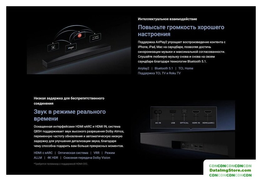 | Мощность звуковой панели (RMS) | 210 Вт |