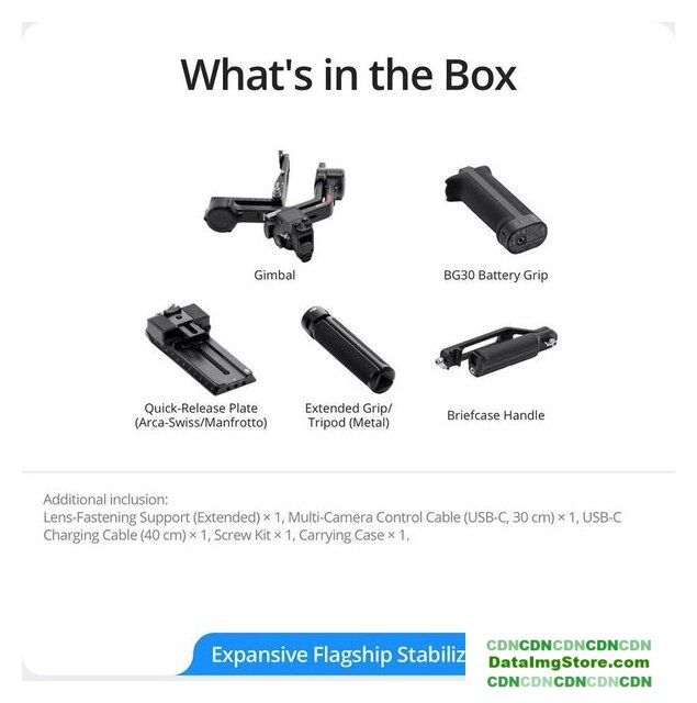 | Комплектация | - Аккумуляторная рукоятка BG30- Быстросъемная площадка (совместимая с Arca-Type/Manfrotto)- Удлинённая рукоятка/штатив- Рукоятка для кейс-режима (Briefcase Handle) для серии RS- Поддержка объектива- Кабель управления камерой USB-C (длина 11,8 дюйма / около 30 см)- Кабель зарядки USB-C (длина 15,7 дюйма / около 40 см)- Набор винтов- Кейс для переноски |