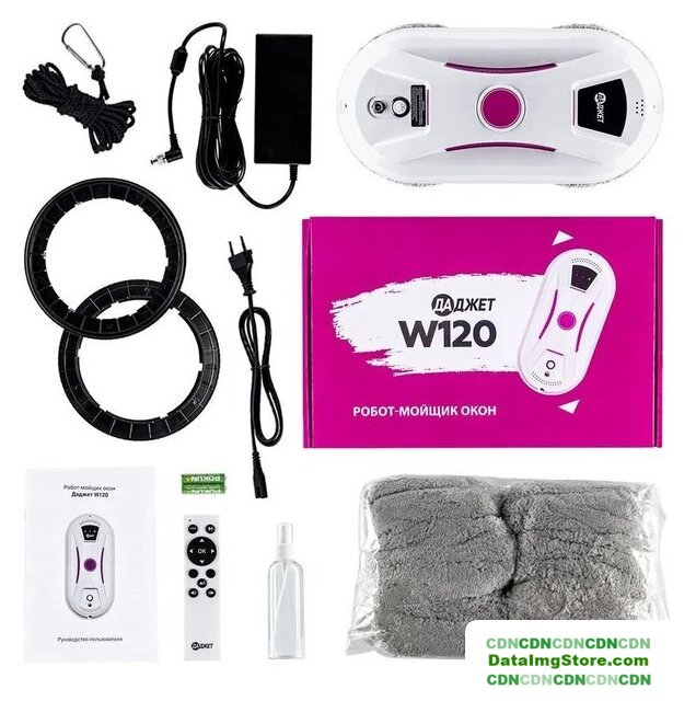 | Комплектация | Робот-мойщик окон Даджет dBot W120Руководство пользователяПульт ДУЧистящие салфетки из микрофибры (10 шт)Адаптер питания (1шт)Кабель питания переменного тока (1 шт)Удлинитель постоянного тока (4 метра)Страховочный шнур с карабином (1 шт)Кольцо для салфеток (4 шт) |